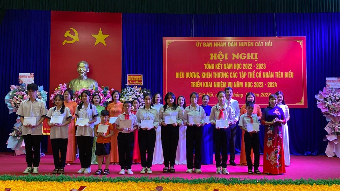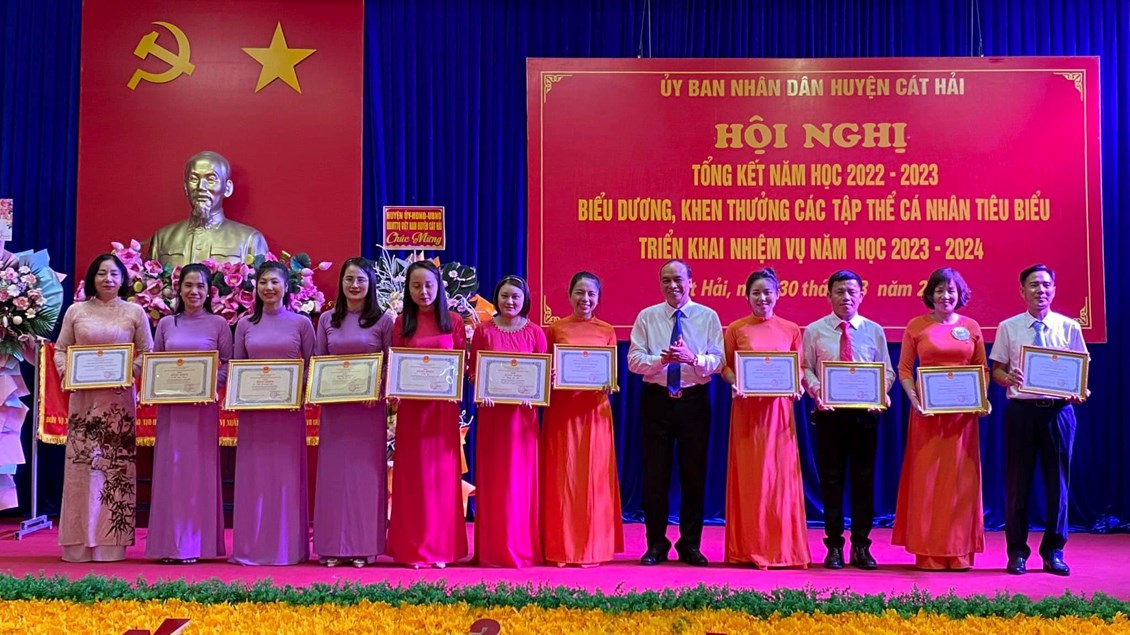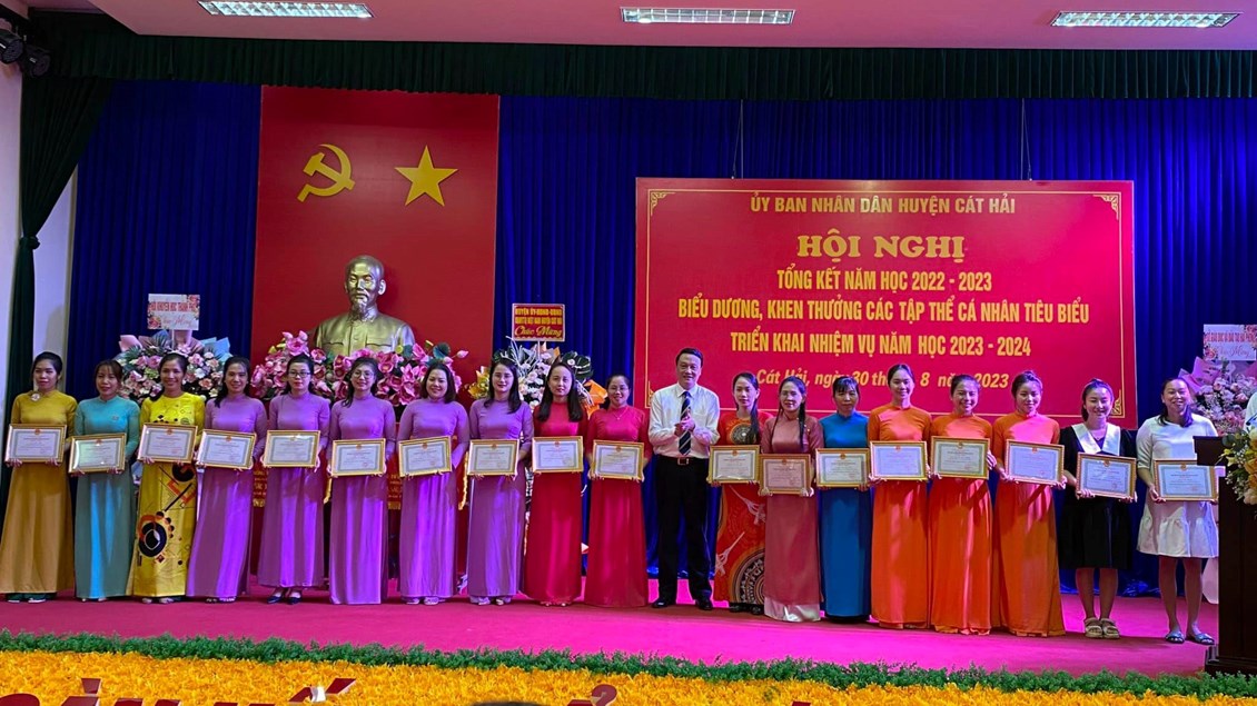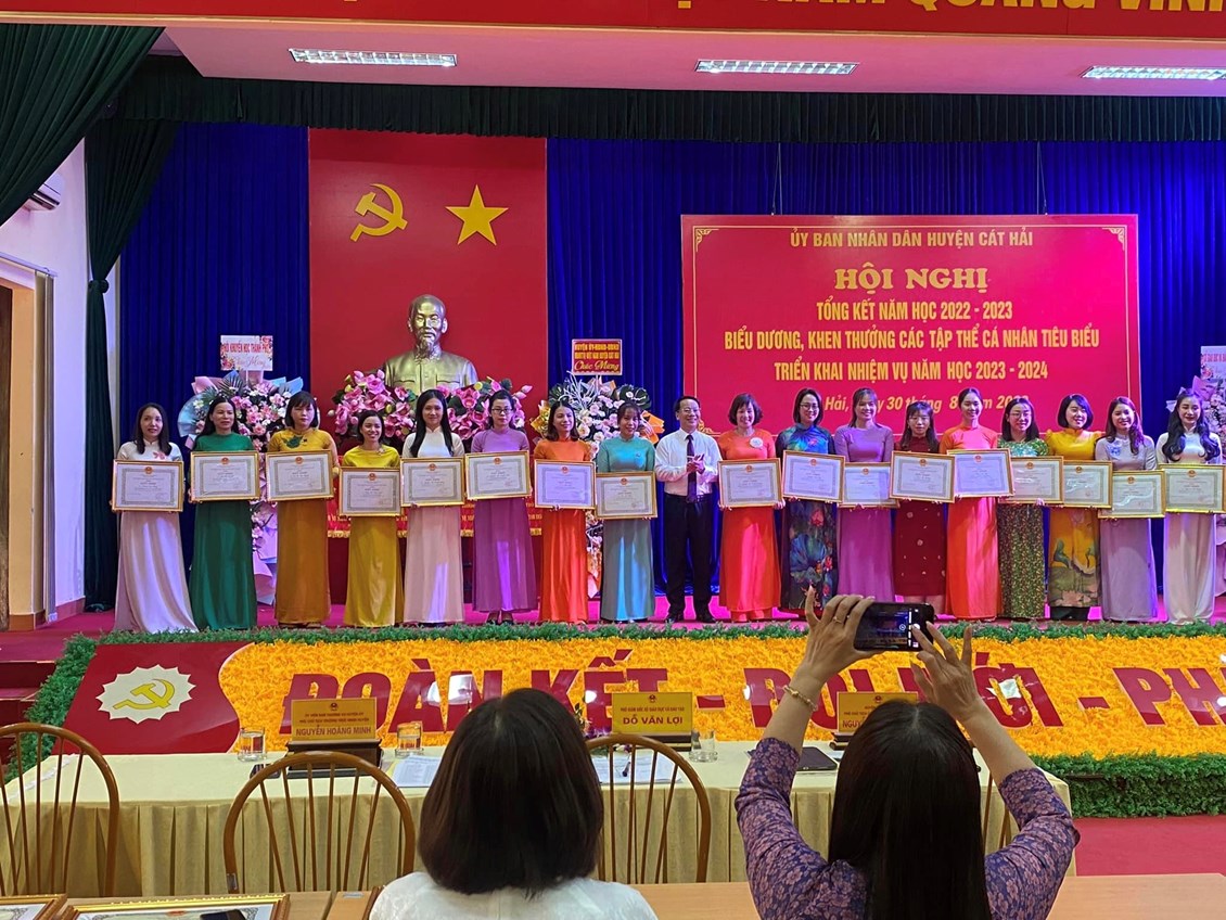 Chúc mừng cô giáo Nguyễn Thuý Nga được nhận giấy khen của Chủ tịch UBND huyện Cát Hải và bé Hoàng Duy Anh được Chủ tịch Hội khuyến học huyện Cát Hải trao thưởng có thành tích xuất sắc trong năm học 2022-2023